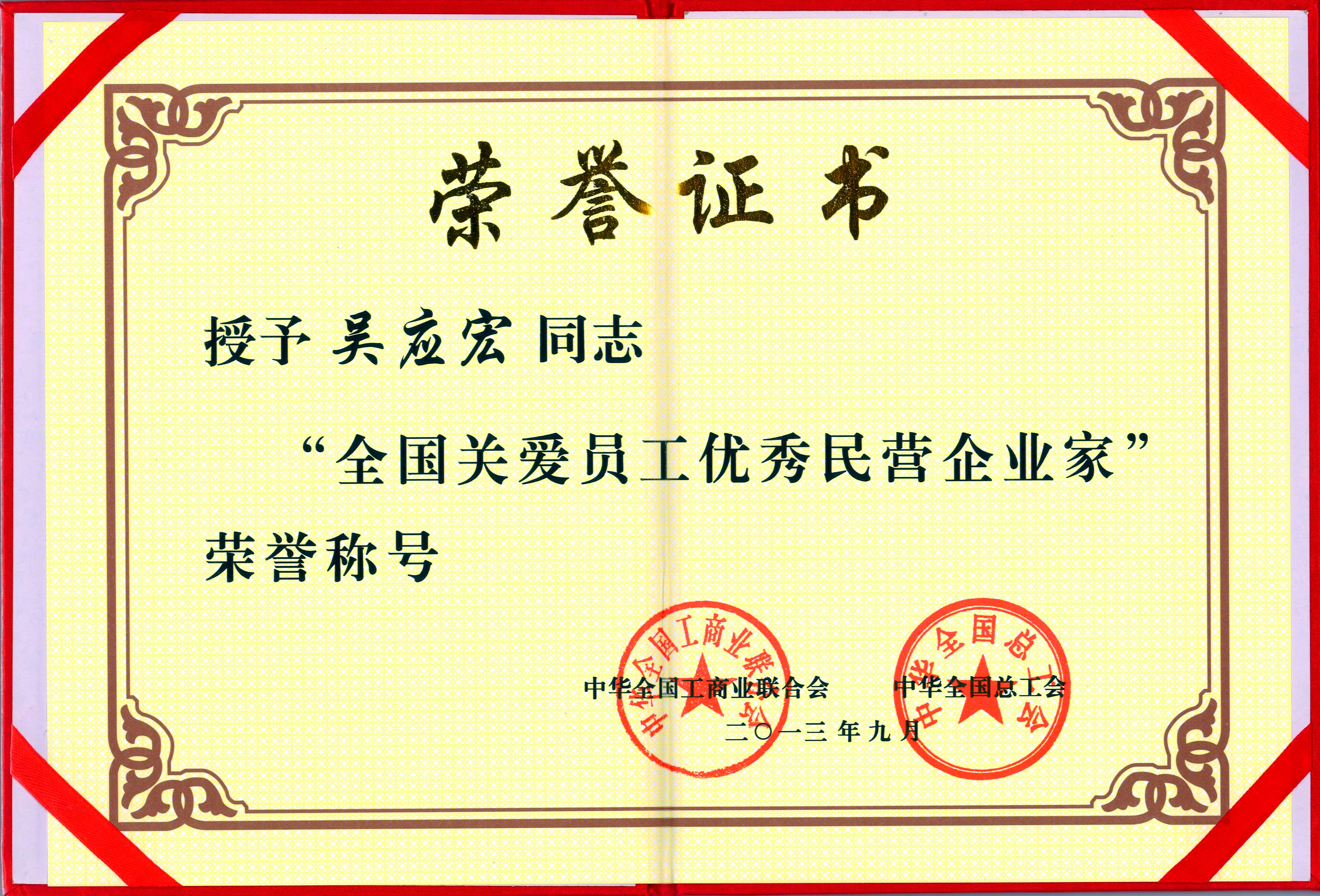 “全國(guó)關(guān)愛(ài)員工優(yōu)秀民營(yíng)企業(yè)家”榮譽(yù)稱(chēng)號(hào)