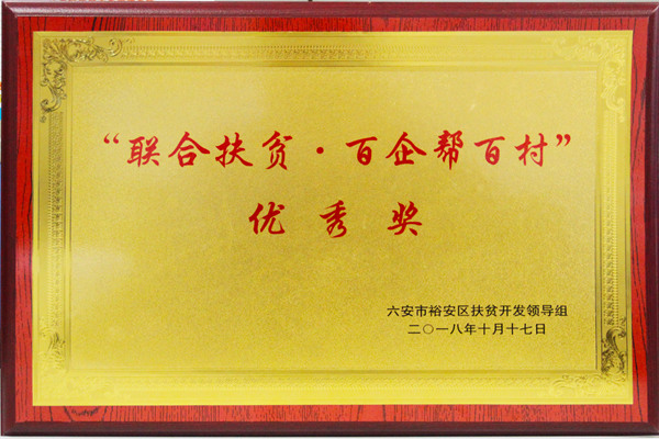 “聯(lián)合扶貧 百企幫百村”優(yōu)秀獎(jiǎng)