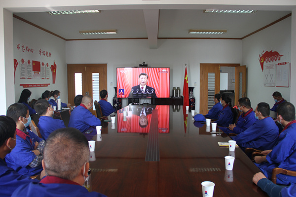收看過程中,全體人員聚精會神聆聽報告,報告中提到的一個接著一個好政策,引起了強(qiáng)烈共鳴。大家都被總書記的報告打動、鼓舞,不時爆發(fā)出陣陣掌聲,也更加堅定了跟黨走的信心。